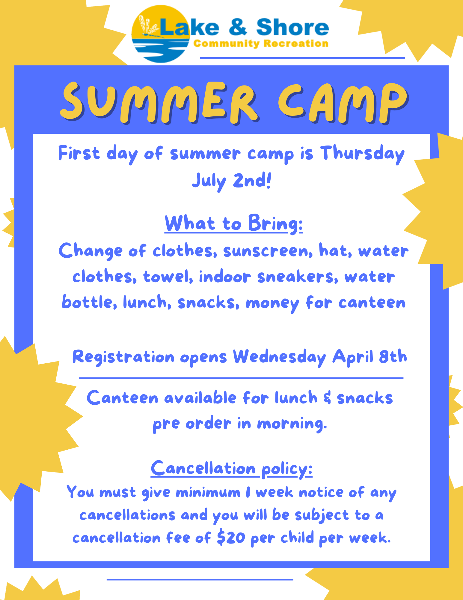 Summer camp registration opens April 8th